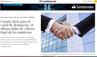 La importancia de implantar este sistema antes de dicha fecha reside en las posibles sanciones a las que puede tener que hacer frente la empresa en el caso de no tener implantado el canal de denuncias el 1 de diciembre, ya que la ley considera como infracción muy grave el incumplimiento de la obligación de disponer de un sistema interno de información en los términos exigidos en la norma y sanciona dicha infracción, si el empresario es una persona física, con multas de 30.001 hasta 300.000 euros, y si el empresario es una persona jurídica con multas entre 600.001 y 1.000.000 de euros. Todo ello, además de la posible prohibición de obtener subvenciones u otros beneficios fiscales durante un plazo máximo de cuatro años.